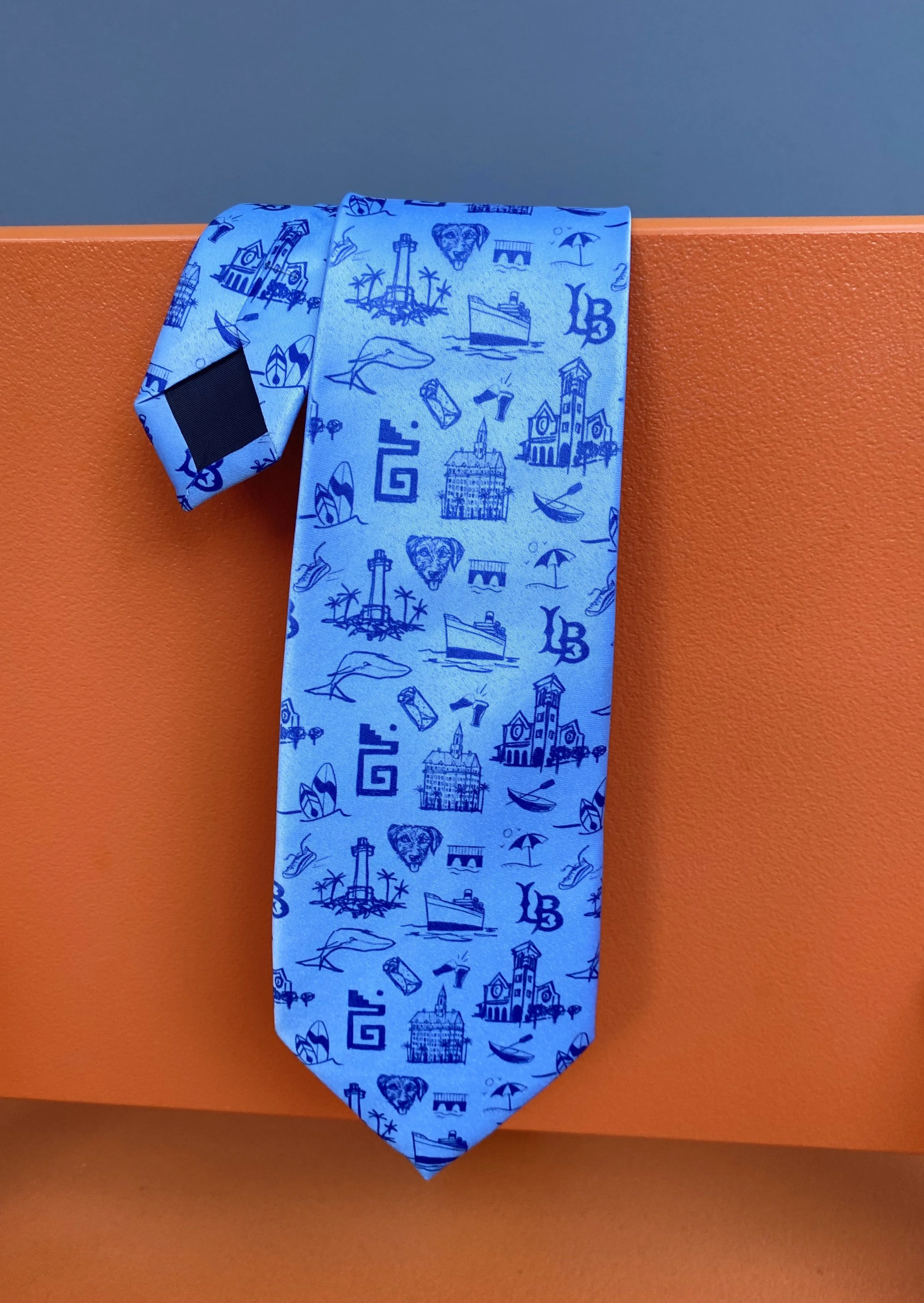 Configuring grouped and individual illustration placement, sizing, and tie color pairings against the dark denim blue stroke selected by the client